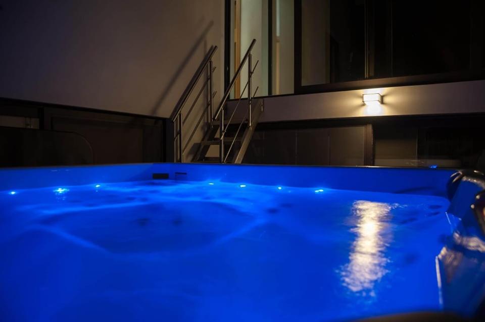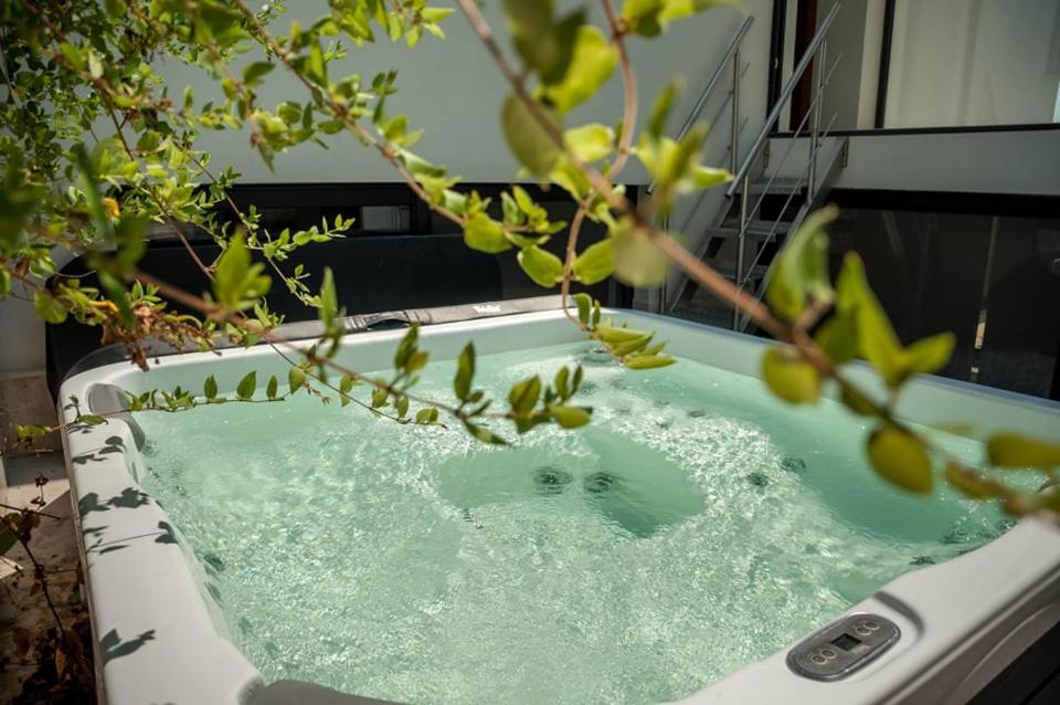 Spa and Wellness Centre: Villa Calypso in Palaión Tsiflíkion offers a spa and wellness centre, featuring a hot tub and open-air bath. Guests can relax in the lounge or outdoor seating area.